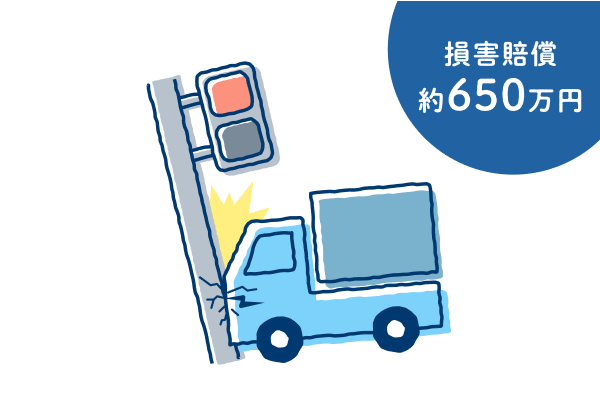 自転車で赤信号の交差点に進入。避けようとしたトラックが信号機に衝突し、トラックと信号機が破損。トラックと信号機合わせて約650万円の損害賠償責任が発生。