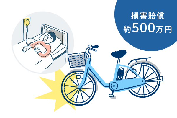 友人と前後に並んで自転車で走行中、前を走っていた友人が転倒。そのまま転倒した友人に突っ込み、ケガを負わせる。全身に痺れ等の症状が残り、約500万円の損害賠償責任が発生。