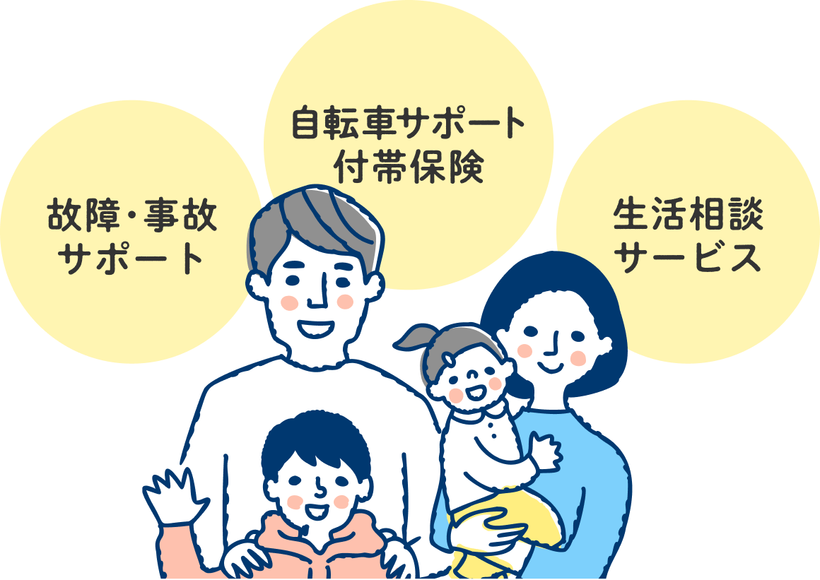 - *1:自転車ロードサービス、自転車事故サポートの駆け付けは、一部離島除きます。